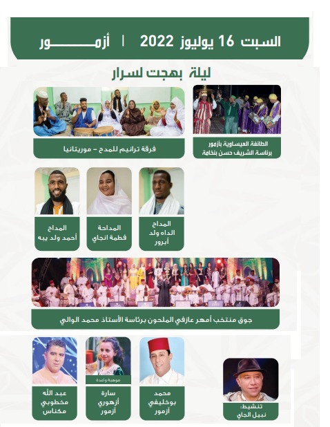 ''ملحونيات آزمور '' أيام 14 ،15 و 16 يوليوز 2022 بساحة ابرهام مول نيس بمدينة آزمور